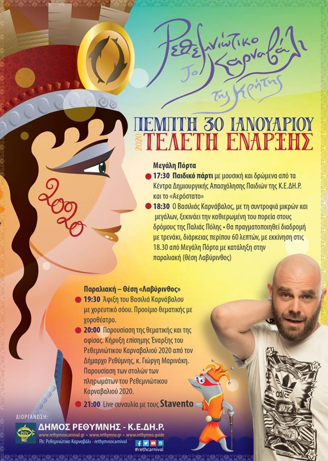 Η Μεγάλη Παρέλαση 2020 θα γίνει μια ημέρα πριν από την Καθαρά Δευτέρα την Κυριακή στις 1 Μαρτίου. Η Καθαρή Δευτέρα όπως κάθε χρόνο θα γιορταστεί με ιδιαίτερο τρόπο στους οικισμούς του Ρεθύμνου αλλά και μέσα στην πόλη.