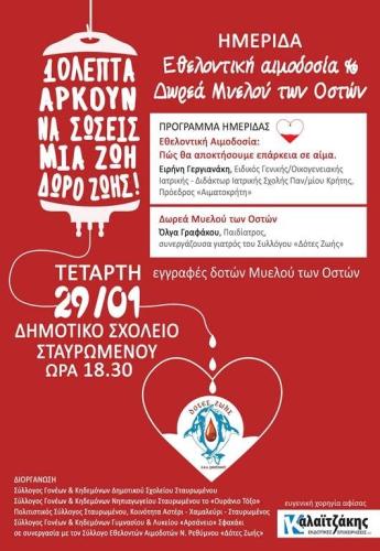 Συμμετέχουν όλοι οι τοπικοί φορείς του Εσταυρωμένου σε συνεργασία με τον Σύλλογο Εθελοντικής Αιμοδοσίας Ρεθύμνου, Δότες Ζωής, διοργανώνουν ημερίδα στο Δημοτικό σχολείο Σταυρωμένου.