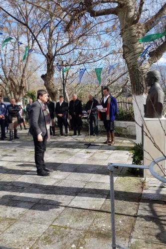 Ακολούθησε αναφορά ιστορικών γεγονότων από τον Πρόεδρο του Πολιτιστικού Συλλόγου Μέρωνα κ. Εμμανουήλ Μοσχονά, Ριζίτικο τραγούδι από ομάδα Μερωνιανών, κατάθεση στεφάνων, τήρηση ενός λεπτού σιγής και ανάκρουση του Εθνικού Ύμνου.