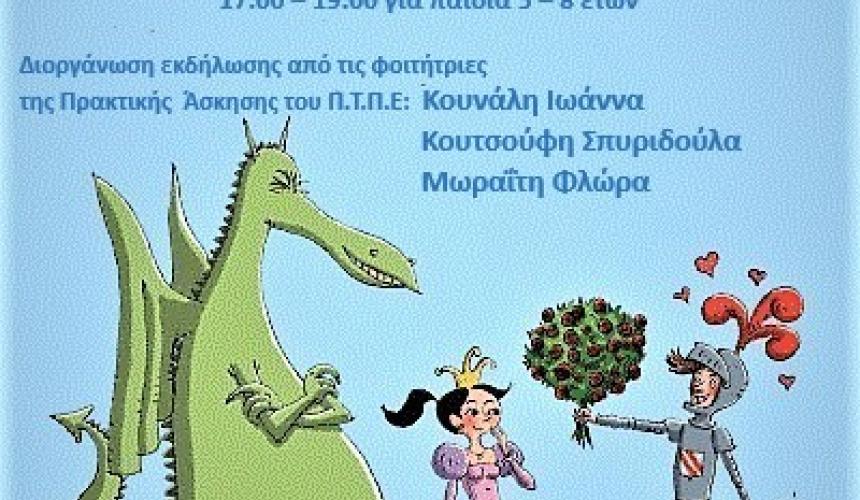 Με χαρά σας προσκαλούμε στην εκδήλωση που έχουμε οργανώσει, ειδικά για παιδιά 5 - 8 ετών, την Τετάρτη 12 Φεβρουαρίου και ώρα 17:00, στο χώρο τη ς Δημόσιας Κεντρικής Βιβλιοθήκης Ρεθύμνου. Η εκδήλωση πραγματοποιείται με αφορμή τις Απόκριες και είναι βασισμένη στο παραμύθι «Η πριγκίπισσα, ο δράκος και ο ατρόμητος ιππότης» του Geoffroy de Pennart. Είναι ένα παιδοκεντρικό πρόγραμμα, γεμάτο κατασκευές, παιχνίδια και διασκέδαση.