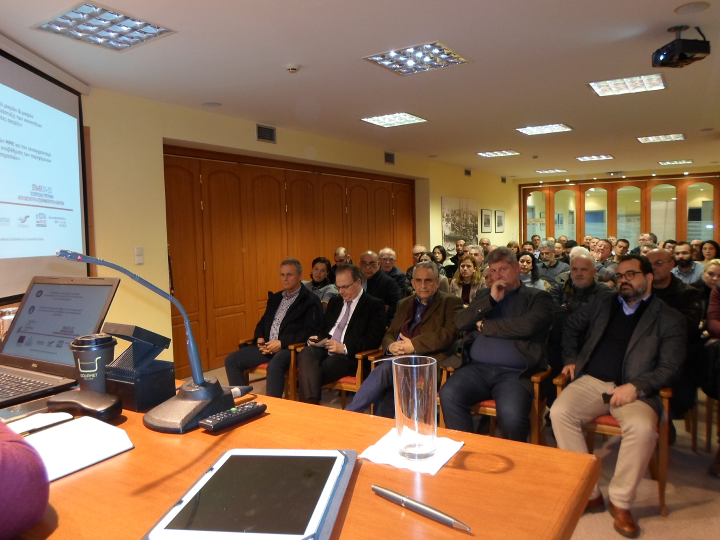 Πραγματοποιήθηκε, τη Δευτέρα 17/2 με τη συμμετοχή πλήθους ενδιαφερόμενων επενδυτών στο Επιμελητήριο Ρεθύμνης, η ενημερωτική εκδήλωση του Επιμελητηρίου και της Αναπτυξιακής Κρήτης με θέμα την Επιτάχυνση της Υλοποίησης των Συγχρηματοδοτούμενων Έργων των Δράσεων του ΕΣΠΑ 2014 – 2020.