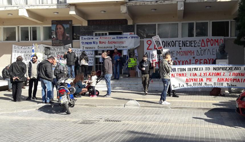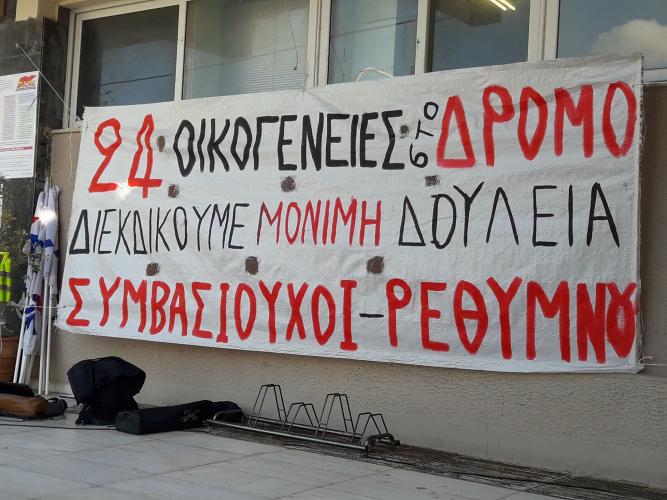 Σε εξέλιξη αυτή την ώρα η απεργιακή συγκέντρωση στο δημαρχείο Ρεθύμνου με «αιχμή» το νέο ασφαλιστικό νομοσχέδιο. Στη συγκέντρωση συμμετέχουν και οι πρόσφατα απολυμένοι συμβασιούχου της καθαριότητας.