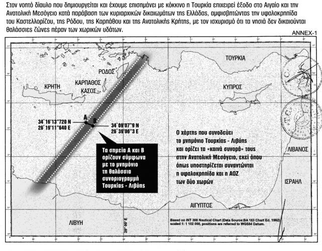Στο μεταξύ, όπως είναι γνωστό η Άγκυρα προανήγγειλε την έναρξη σεισμικών ερευνών εντός της περιοχής στην ελληνική υφαλοκρηπίδα που επιχειρεί να υφαρπάξει μέσω του παράνομου συμφώνου Τουρκίας-Λιβύης. Σύμφωνα με δημοσίευμα της Yeni Safak (εκφράζει το περιβάλλον του Ταγίπ Ερντογάν) υπό τον τίτλο «Έτοιμη η άδεια της Κρήτης» η Άγκυρα προετοιμάζεται για την αποστολή του ερευνητικού “Ορούτς Ρέις” στα νοτιοανατολικά της Κρήτης.