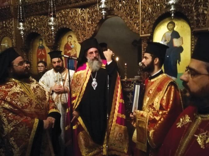 « Σαν απόψε στον εσπερινό της Ορθοδοξίας πριν τριάντα χρόνια , τέτοια ώρα γινόμουν μοναχός , από τα τίμια χέρια του αγίου γέροντος μου, του μακαριστού Μητροπολίτου Πέτρας και Χερσονήσου κυρού Νεκταρίου του μεγάλου. Και σαν αύριο Κυριακή της Ορθοδοξίας , γινόμουν διάκονος για αποδυθώ με την ευχή της εκκλησίας και την δική του ευλογία ,το έργο της διακονίας του λαού του Θεού. Ένα έργο που δόξα ων Θεώ τριάντα χρόνια τώρα συνεχίζεται, με την Χάρη του και μόνο για την δική Του δόξα . Απόψε με όλη μου την αγάπη αποφάσισα να τοποθετηθείς στον φυσικό σου χώρο και στην φυσική σου θέση. Στην θέση του ηγουμένου . Περίμενα μερικά λίγα χρόνια υπομονετικά, όχι για να καταλάβω πως είσαι άξιος να γίνεις Ηγούμενος αλλά για να βρεθούν ένα – δυο παιδιά ακόμα για να είσαι όντως ηγούμενος μιας αδελφότητας «.