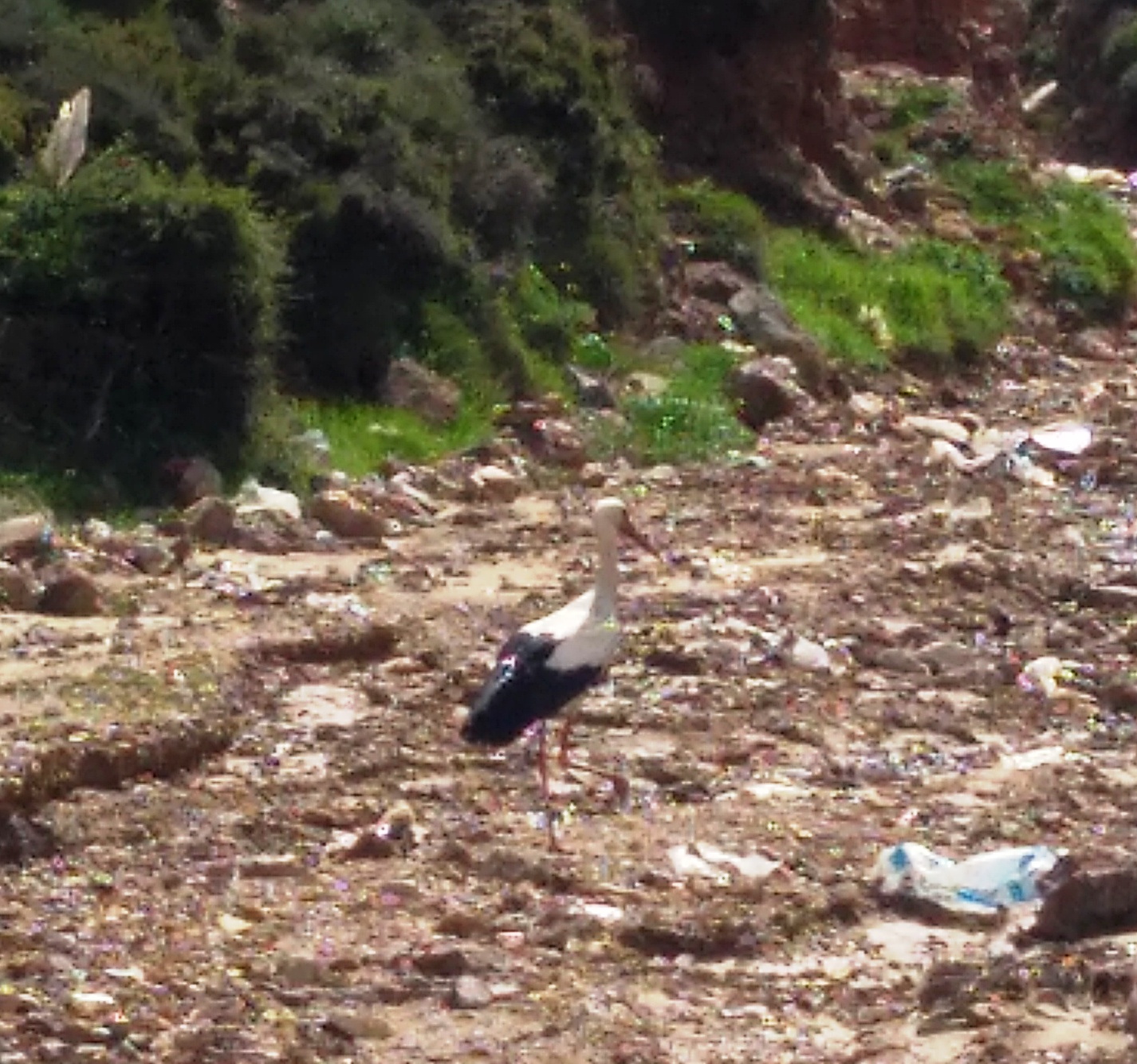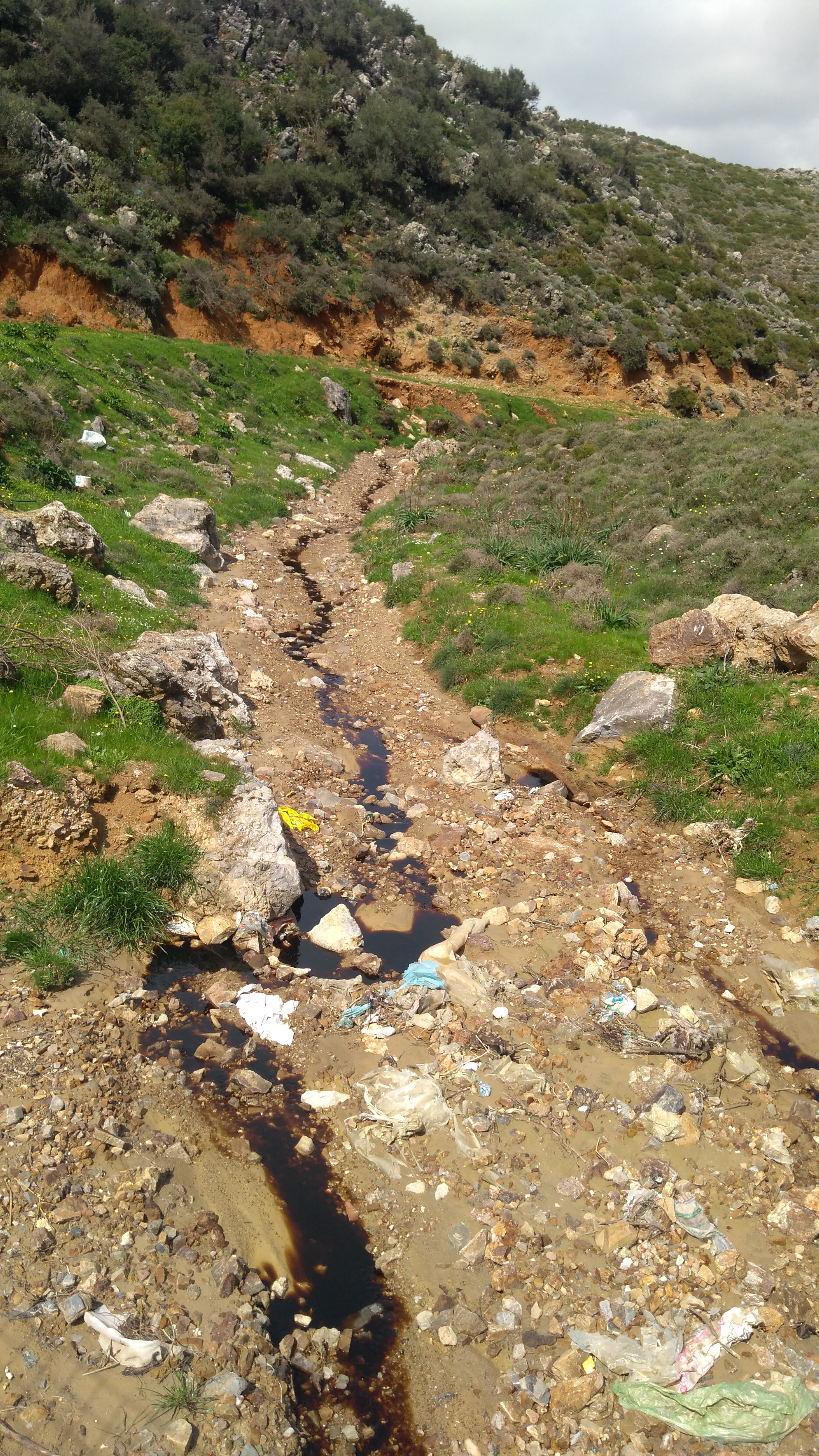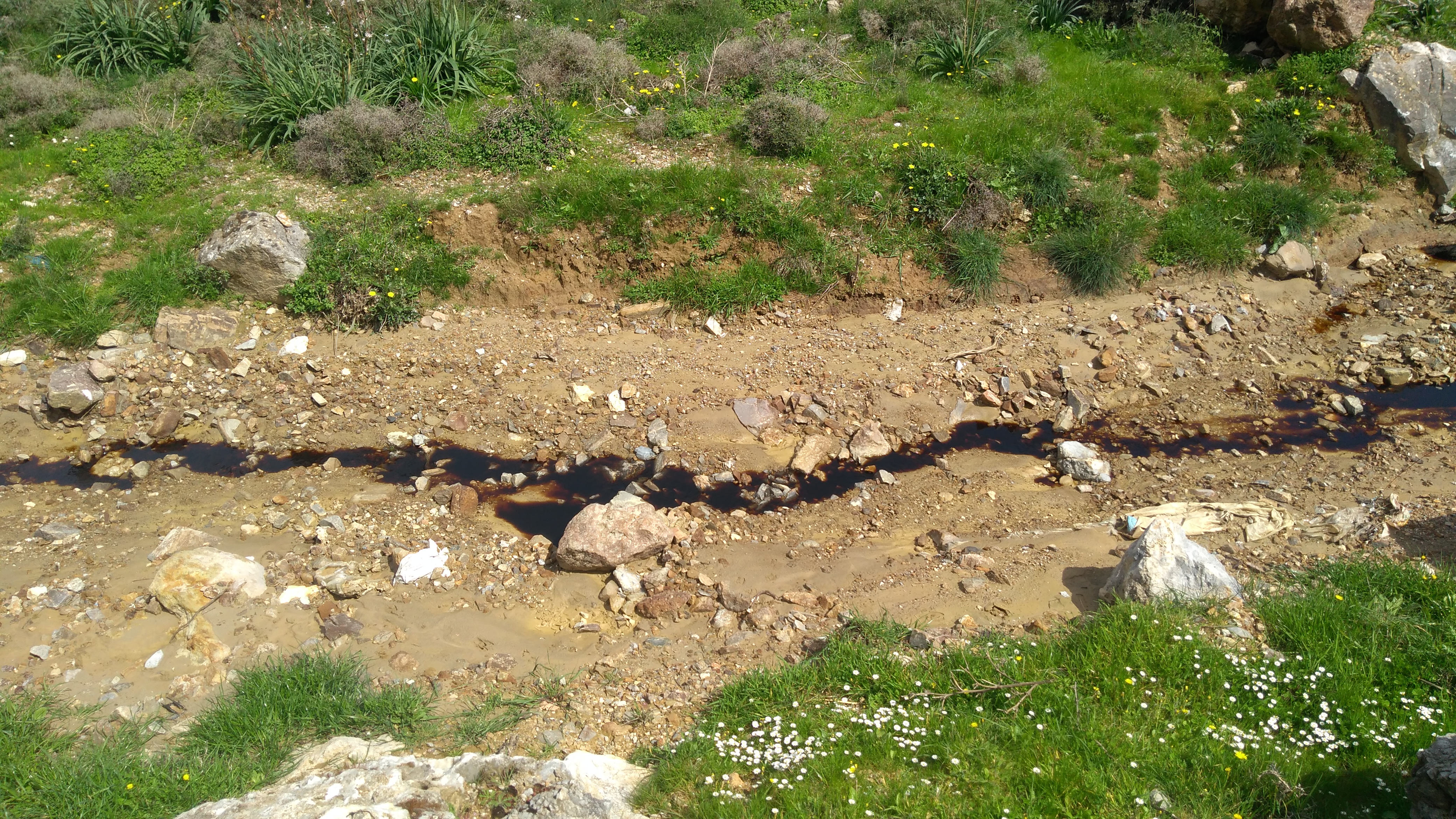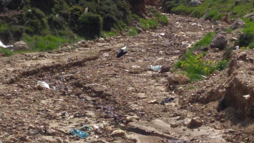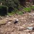Το παρακείμενο ρυάκι τρέχει με μαύρο νερό μολυσμένο. Μέσα σε αυτό βλέπουμε ένα πελαργό να προσπαθήσει να πετάξει. Αδύνατον. Το ίδιο και ένας γλάρος. Τα πουλιά είναι άρρωστα και αυτά.