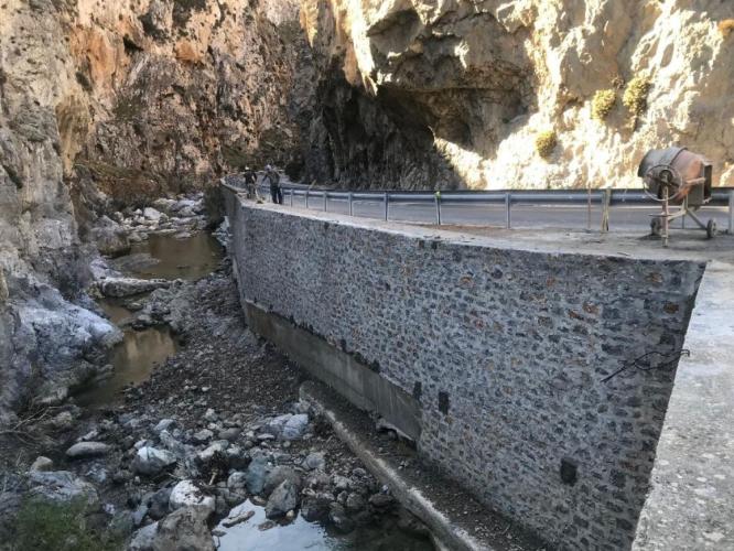 Πρώτον, υλοποιείται κανονικά η εργολαβία της προστασίας από βραχοπτώσεις στο Φαράγγι του Κουρταλιώτη, προϋπολογισμού 1.200.000 Ευρώ. Οι εργασίες, που βρίσκονται σε εξέλιξη, περιλαμβάνουν την κατασκευή τοιχίων και οχετών και εκτελούνται με ικανοποιητικούς ρυθμούς, παρότι πολλές ημέρες οι καιρικές συνθήκες παρεμποδίζουν το έργο των συνεργείων.