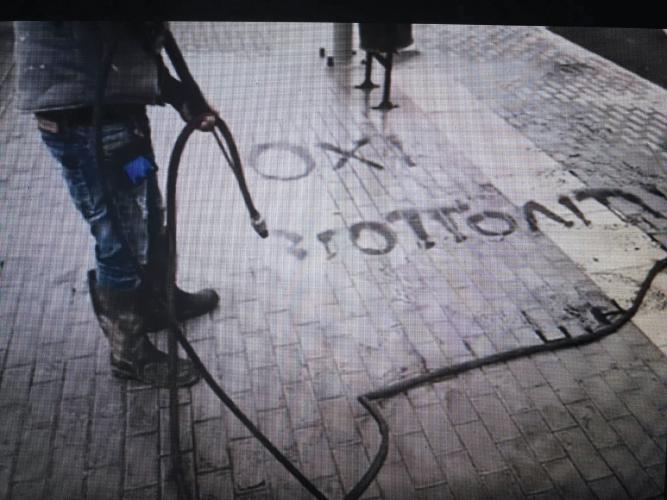 Μάλιστα, όπως υπογράμμισε για πρώτη φορά είχαμε τέτοια έκταση και στον πεζόδρομο της παραλιακής λεωφόρου και πρόσθεσε: «Τα γκράφιτι στην παραλία καθαρίστηκαν με ειδικό μηχάνημα υδροβολής από το δήμο και το ίδιο βράδυ ξαναγράφτηκαν».
