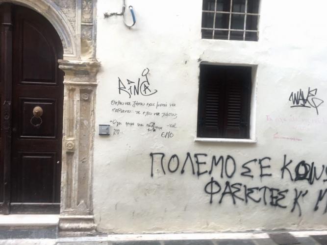 Για φαινόμενο που ξέφυγε από κάθε κλίμακα μίλησε ο αντιδήμαρχος Θωμάς Κρεβετζάκης, τονίζοντας όχι μόνο τον πολύ μεγάλο όγκο των γκράφιτι σε όλο το μήκος κάποιων στενών, σε ρολά καταστημάτων και τοίχους σπιτιών, αλλά και σε μνημεία, όπως το τζαμί της Νερατζές και τις κρήνες στην Πάνου Κορωναίου.