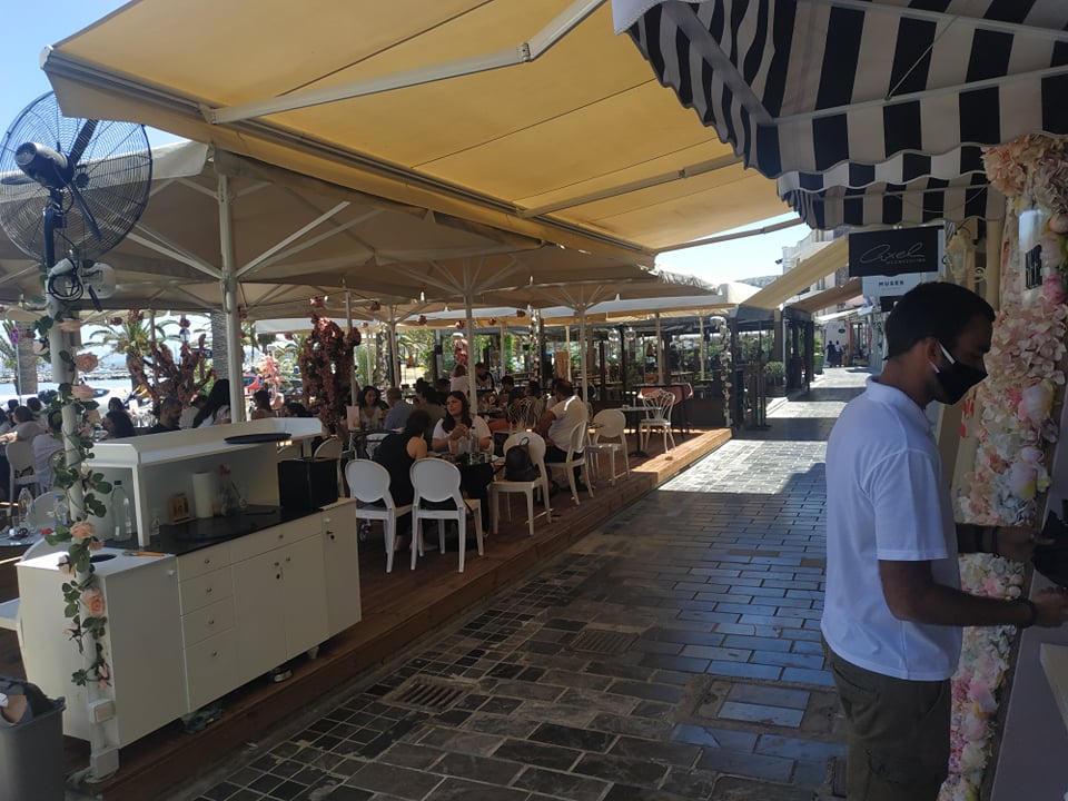 Οι σημερινές εικόνες από την ρεθεμνιώτικη παραλία δεν έχουν καμία σχέση με τις έρημες ημέρες της καραντίνας αφού πλέον ξεκίνησε η λειτουργία των καταστημάτων εστίασης και αναψυχής.