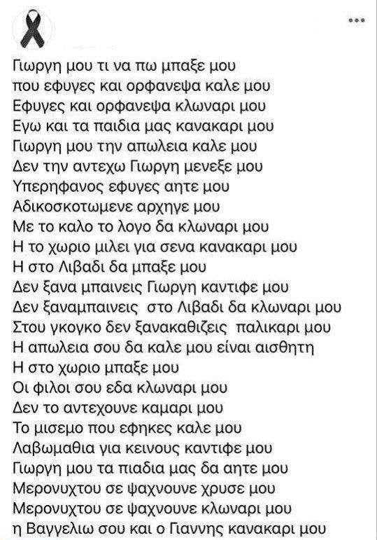 Η ίδια έγραψε ένα μοιρολόι για τον σύζυγο της που ραγίζει καρδιές.