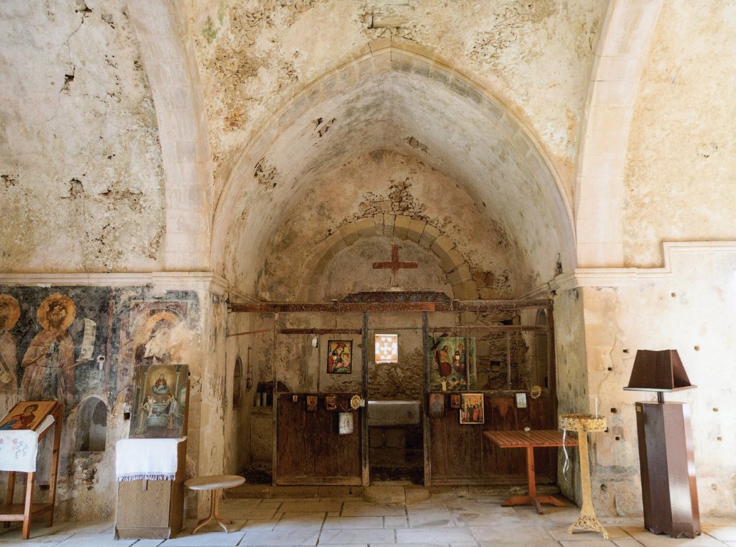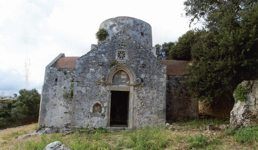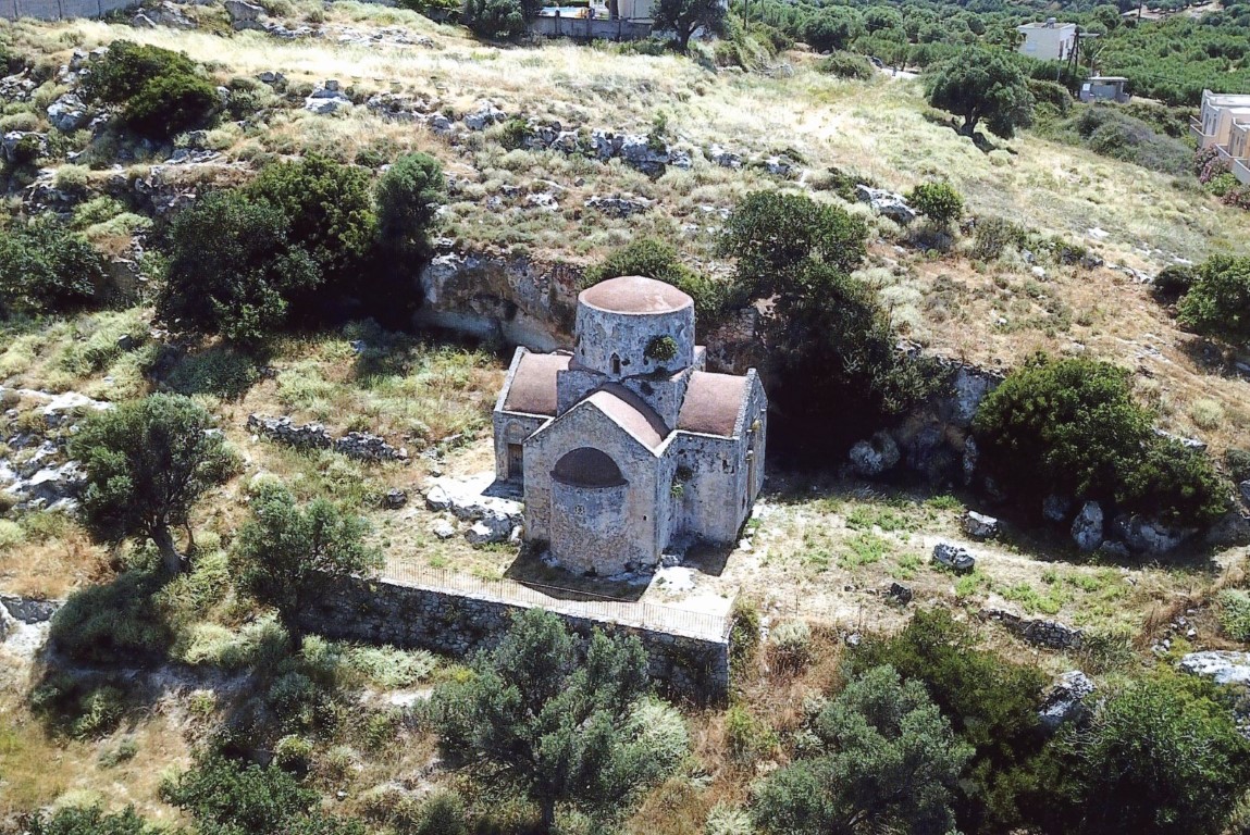 Θεωρείται ο μεγαλύτερος σταυροειδής ναός με τρούλο της εποχής του στην Κρήτη. Στο εσωτερικό του ναού υπάρχει ένα από τα ωραιότερα αρκοσόλια του 16ου αιώνα (Ενετικό ταφικό μνημείο) με οικόσημο των Τζαγγαρόλων, όπου απεικονίζεται η Έξωση των Πρωτόπλαστων Αδάμ και Εύας από τον Παράδεισο.