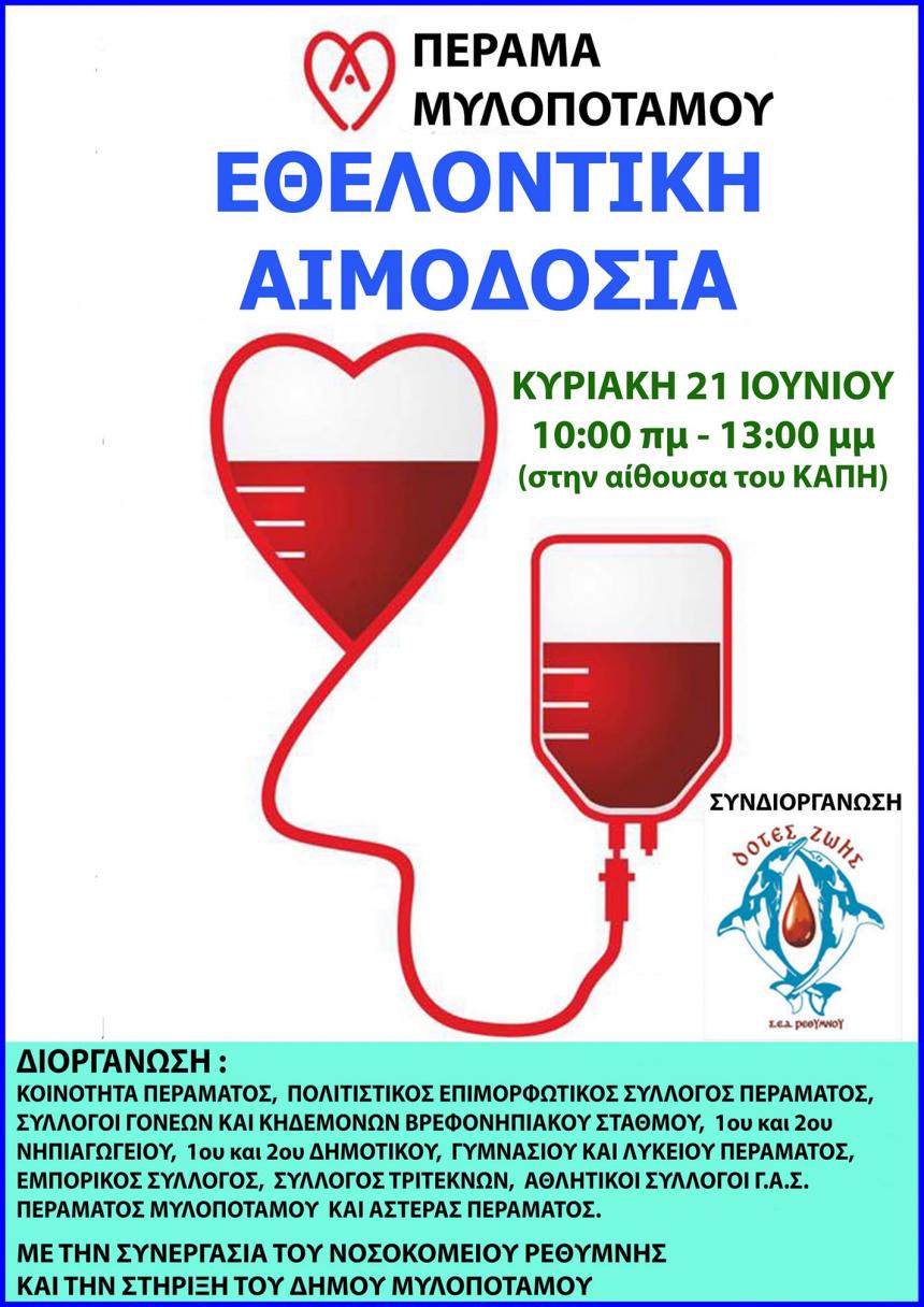 Δήμο Μυλοποτάμου για την υποστήριξη καθώς και το Γενικό Νοσοκομείο Ρεθύμνου για την πραγματοποίηση της αιμοδοσίας.