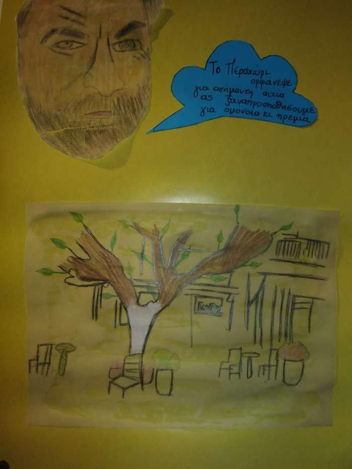 Η μικρή 11χρόνη Ευηνίκη Καλομοίρη, κόρη του Παντελή και της Ειρήνης έπιασε το μολύβι της και πάνω σε μια μικρή κόλλα χαρτί εξέφρασε όλα τα συναισθήματα της, όλο το μεγαλείο της παιδικής ηλικίας. Άλλωστε κανείς δε μπορεί να κρυφτεί από τα παιδιά. Ούτε να τους αποκρύψει καταστάσεις. Έτσι κι αλλιώς τα ξέρουν όλα.