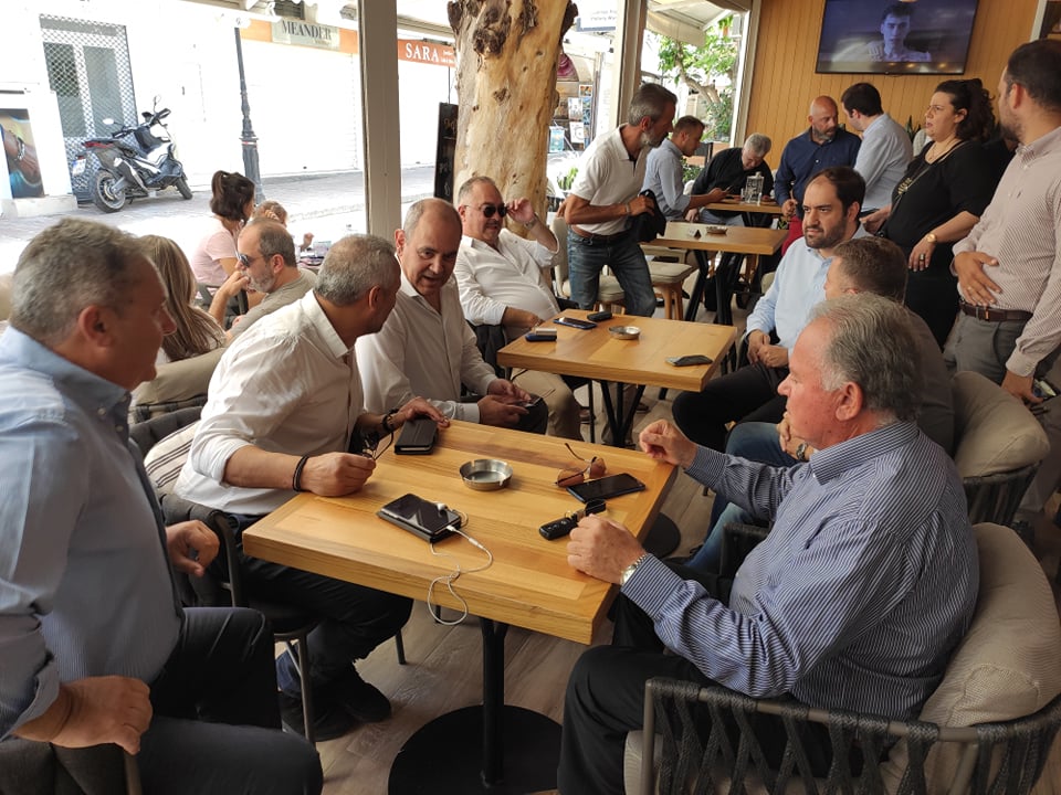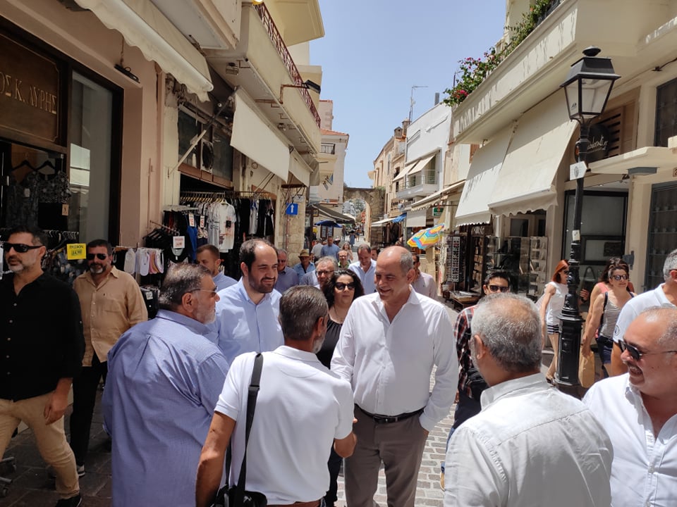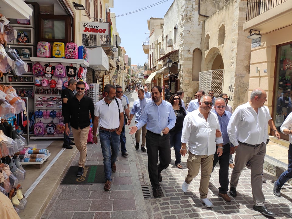 Με την συνοδεία του Προέδρου της ΝΟΔΕ Ρεθύμνου κ. Γιάννη Φουρφουλάκη και άλλων στελεχών της Ν.Δ. οι δύο Κρήτης βουλευτές, είχαν την ευκαιρία να συνομιλήσουν με καταστηματάρχες και κόσμο που συνάντησαν στην παλιά πόλη ενώ βρήκαν χρόνο και για ένα χαλαρό καφέ δίπλα στην κρήνη Ριμόντι.