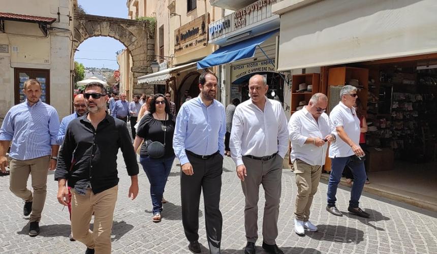 Την παλιά πόλη του Ρεθύμνου επισκέφθηκαν το μεσημέρι ο Υφυπουργός Μεταφορών και Υποδομών κ. Γιάννης Κεφαλογιάννης και ο Υφυπουργός Παιδείας κ. Βασίλης Διγαλάκης. Μετά την επίσκεψη στο Ινστιτούτο φυσικής, πλάσματος και laser του Ελληνικού Μεσογειακού Πανεπιστημίου στα Τρία Μοναστήρια, τα δύο στελέχη της κυβέρνησης έκαναν περίπατο στο ιστορικό κέντρο.