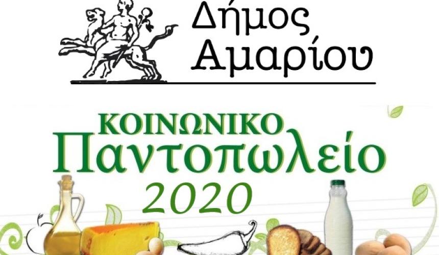 Ο Δήμος Αμαρίου ενημερώνει τους δικαιούχους του προγράμματος ΤΕΒΑ ότι θα πραγματοποιηθεί διανομή προϊόντων την Τετάρτη 24/6/2020 κατά τις ώρες 10:00 έως 12:00 το πρωί στο χώρο του Κοινωνικού Παντοπωλείου στην Κοινότητα Βυζαρίου. Ταυτόχρονα, θα γίνει διανομή προϊόντων στους δικαιούχους του Κοινωνικού Παντοπωλείου του Δήμου Αμαρίου.