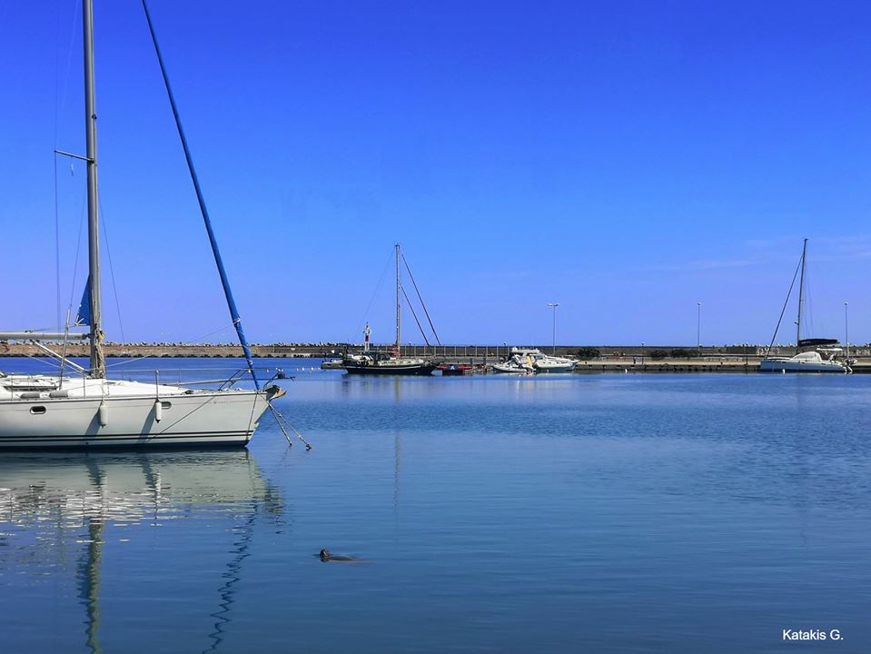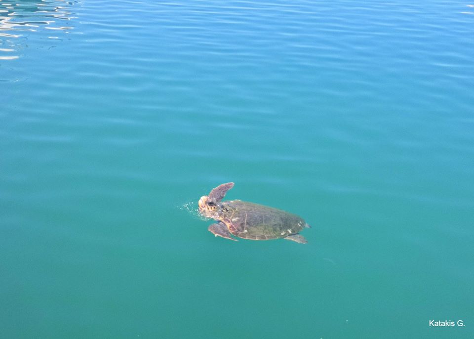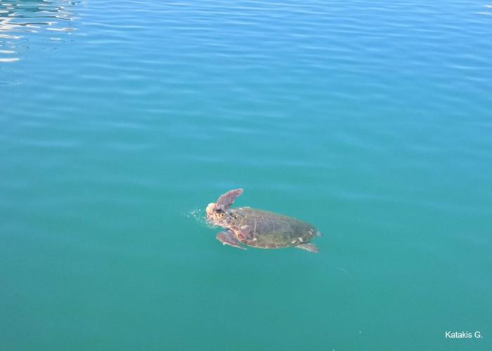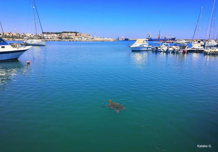 Το πρωί της Τρίτης μία καρέτα - καρέτα που κολυμπούσε στα νερά της μαρίνας της πόλης, τράβηξε τα βλέμματα των περαστικών που απαθανάτισαν το πέρασμα της.