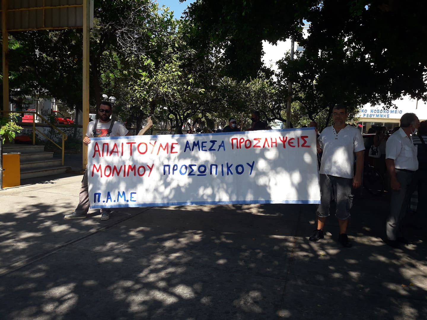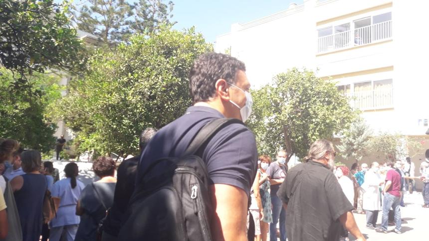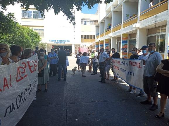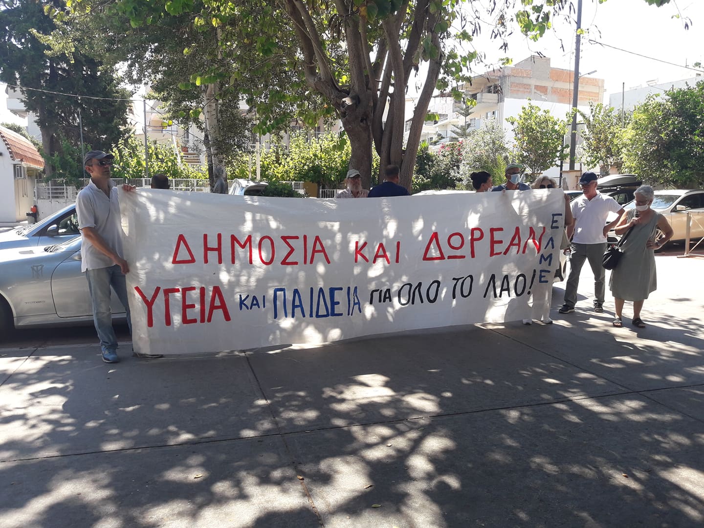 Με γυρισμένη την πλάτη και πανό διαμαρτυρίας υποδέχθηκαν τον υπουργό Υγείας Βασίλη Κικίλια γιατροί, εργαζόμενοι και πολίτες στο Νοσοκομείο Ρεθύμνου.