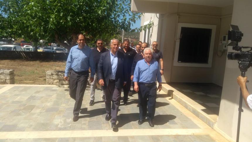 Ο κ. Βορίδης έφτασε στο Πέραμα λίγο μετά τις 15:30 και τον υποδέχθηκαν ο Υφυπουργός Υποδομών και Μεταφορών κ. Γιάννης Κεφαλογιάννης, ο Δήμαρχος Μυλοποτάμου κ. Δημήτρης Κοκκινος, Ο Αντιπεριφερειάρχης Κρήτης κ. Μανώλης Χνάρης και ο Πρόεδρος του Αγροτικού Συνεταιρισμού Μυλοποτάμου κ. Μανώλης Κουγιουμουτζής.