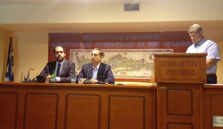 Συνάντηση με τον Πρόεδρο και την Διοίκηση του Επιμελητηρίου Ρεθύμνης, είχε την Παρασκευή, 3 Ιουλίου ο Υπουργός Τουρισμού κ. Χ. Θεοχάρης στα πλαίσια της περιοδείας του στην Κρήτη. Στην συνάντηση συμμετείχε ο Υφυπουργός Mεταφορών και Βουλευτής Ρεθύμνου κ. Γιάννης Κεφαλογιάννης και ο Δήμαρχος Ρεθύμνου κ. Γιώργος Μαρινάκης.