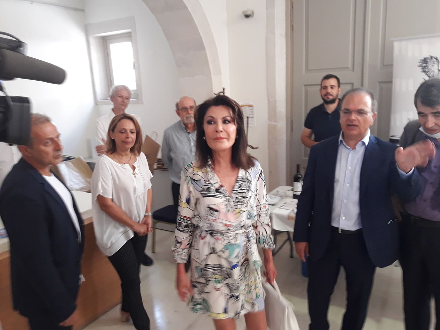 Νωρίτερα την κ. Αγγελοπούλου υποδέχτηκαν στο Δημοτικό Κήπο Ρεθύμνου, ο δήμαρχος Γιώργης Μαρινάκης, οι αντιδήμαρχοι Πέπη Μπιρλιράκη, Άγγελος Μαλάς, Θωμάς Κρεβετζάκης, Γιώργος Γεωργαλής και ο πρόεδρος του Δημοτικού Συμβουλίου Νίκος Αγριμάκης, ενώ παρόντες ήταν και οι καθηγητές Αλέξης Πολίτης και Νίκος Κανελλόπουλος.