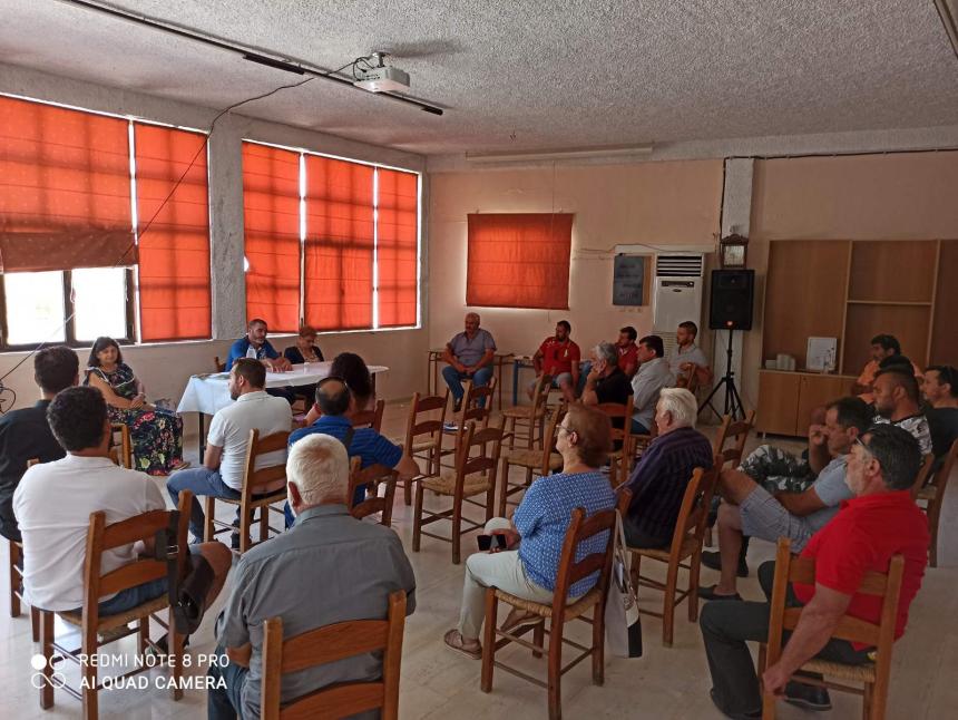 Σε σύσκεψη στην Κοξαρέ του Δήμου Αγ. Βασιλείου για την υλοποίηση του προγράμματος δακοκτονίας στον Αγ. Βασίλειο Ρεθύμνου συμμετείχαν ο Αντιπεριφερειάρχης Πρωτογενή Τομέα Μανόλης Χνάρης, η Αντιπεριφερειάρχης Ρεθύμνου Λιονή Μαρία, ο Δήμαρχος Αγ. Βασιλείου Γιάννης Ταταράκης, ο αρμόδιος αντιδήμαρχος Μανόλης Βαβουράκης, ο ανάδοχος του έργου, οι πρόεδροι των τοπικών κοινοτήτων και στελέχη της ΔΑΟΚ Ρεθύμνου.