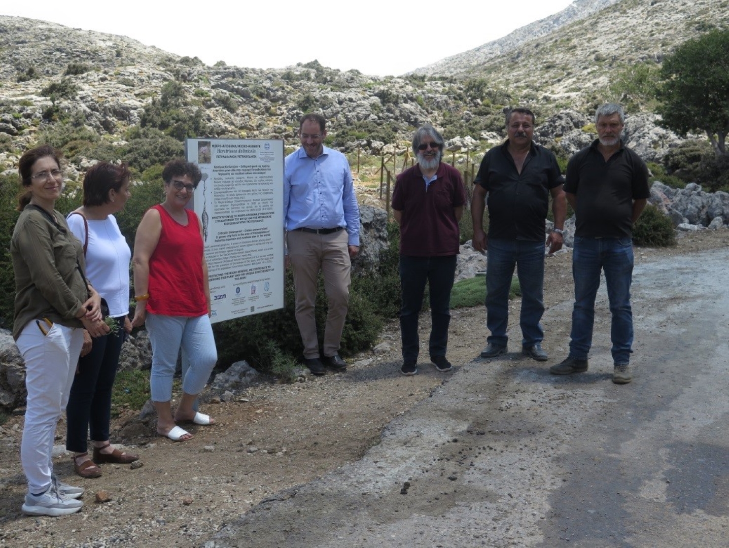 Η περιοχή του Μικρο-Αποθέματος για το φυτό Horstrissea dolinicola στα Πετραδολάκια. Παράδοση του έργου της περίφραξης (μικρής πειραματικής επιφάνειας) και ταμπέλας για ενημέρωση των επισκεπτών, παρουσία του Δημάρχου Ανωγείων κ. Σωκράτη Κεφαλογιάννη, της Διευθύντριας της Δ/νσης Δασών Ρεθύμνης και εργαζομένων του ΜΑΙΧ και της Διεύθυνσης Δασών Ρεθύμνης.