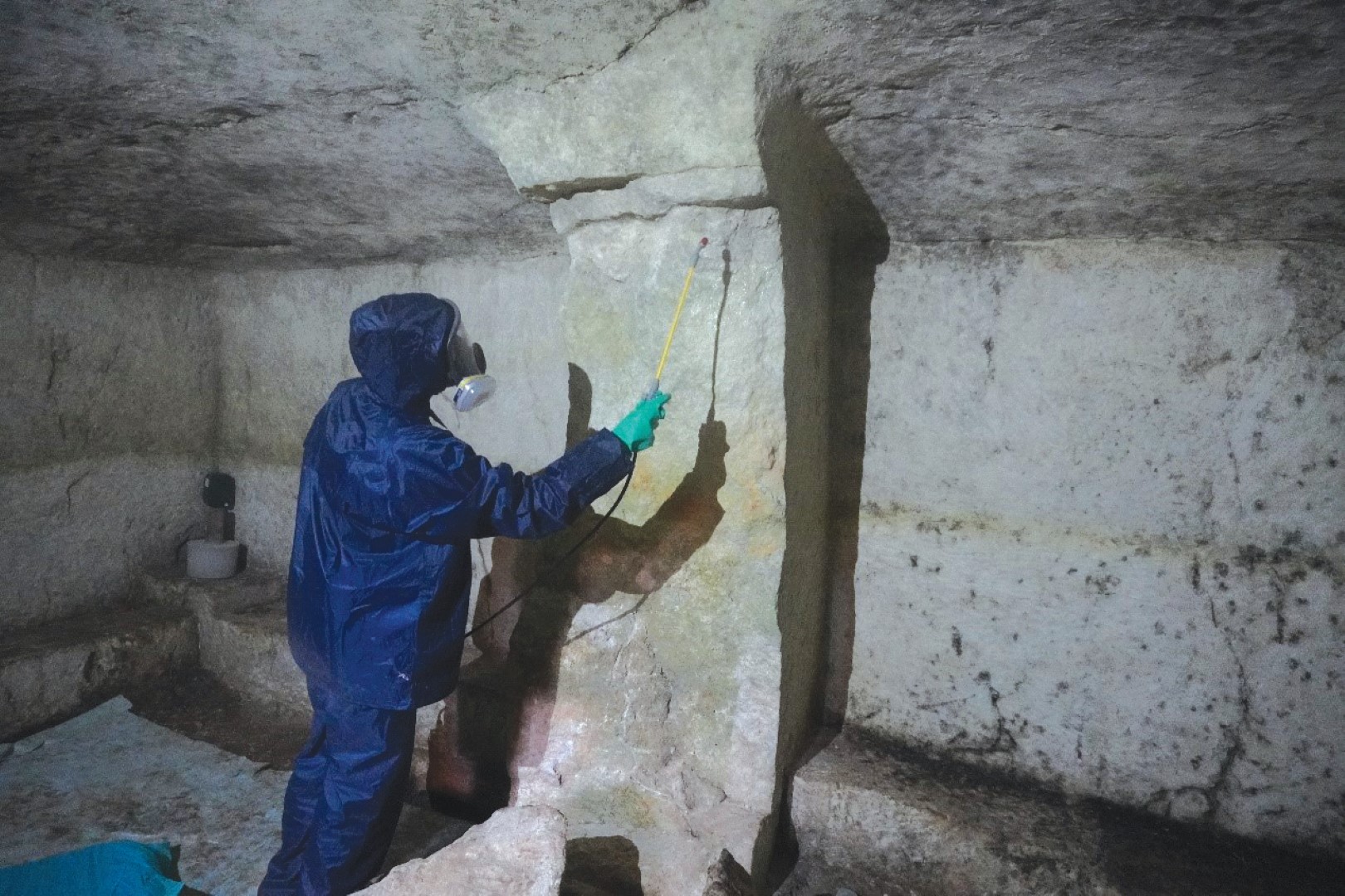 Ενδεικτικά παρουσιάζεται στις φωτογραφίες η συντήρηση του Τάφου 159, η οποία αποτέλεσε πρόκληση για την ομάδα συντήρησης, λόγω των ιδιαίτερων περιβαλλοντικών συνθηκών και της έντονης ανάπτυξης βιολογικών επικαθήσεων μέσα στον τάφο. Για την διασφάλιση της υγείας δόθηκε βαρύτητα στον εξοπλισμό προστασίας των συντηρητών.