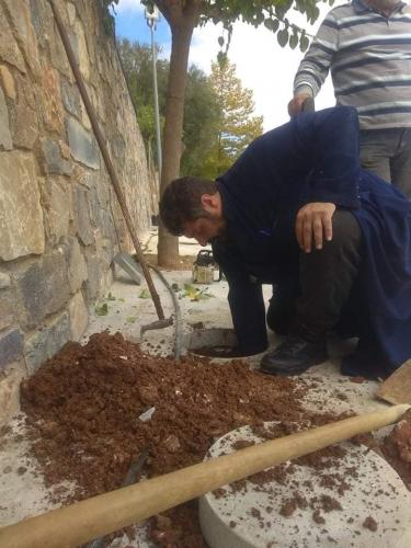 Άλλωστε η δενδροφύτευση έγινε σε αυτό ακριβώς τον χώρο, ο οποίος εμπλουτίστηκε με 17 σκίνους που ταιριάζουν απόλυτα με το περιβάλλον. Στην ξεχωριστή αυτή πλατεία σχεδιάζεται και η κατασκευή ενός σιντριβανιού, το οποίο θα συμβολίζει το Αγίασμα της Αγίας Θεοδώρας, ο ναός της οποίας είναι ο μοναδικός στην Κρήτη, στον οποίο τιμάται η μνήμη Της κάθε 11η Σεπτεμβρίου και συγκεντρώνει πλήθος προσκυνητών.