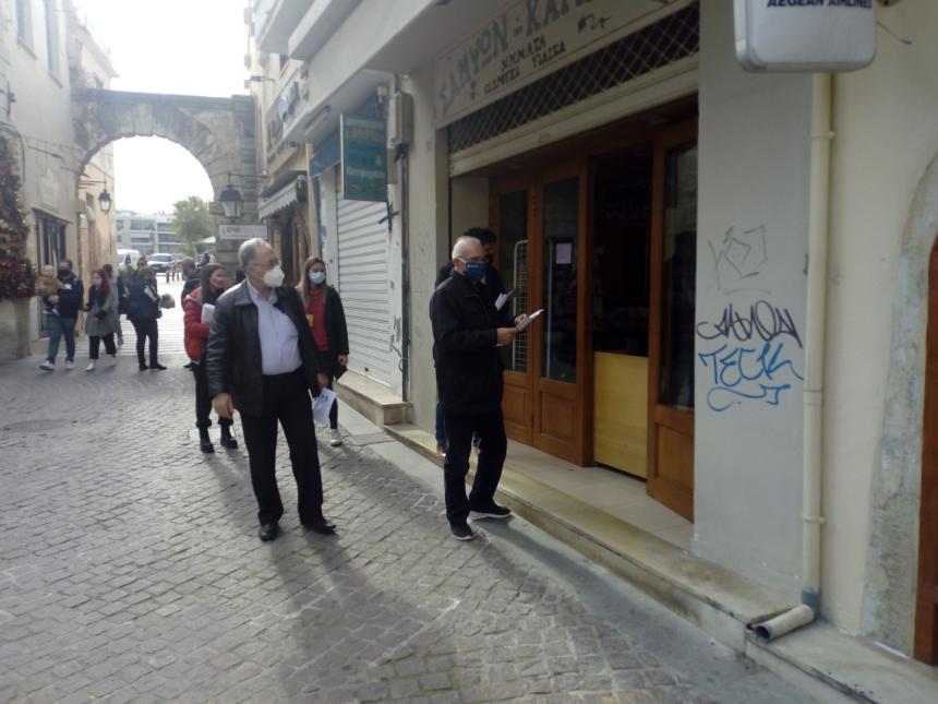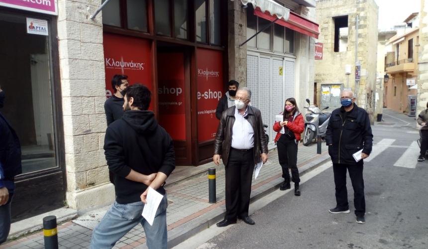 Μαζική εξόρμηση στα μικρομάγαζα της αγοράς τους Ρεθύμνου, πραγματοποίησε κλιμάκιο της ΤΕ Ρεθύμνου του ΚΚΕ, αποτελούμενο από τον Νίκο Μανουσάκη, μέλος του ΓΠ Κρήτης και περιφερειακό σύμβουλο, το Μανούσο Μανουσογιάννη, μέλος της ΤΕ και δημοτικό σύμβουλο και στελέχη του Κόμματος.