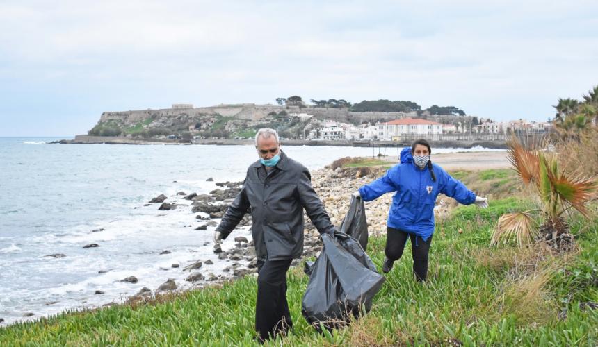 Πιο συγκεκριμένα, το Τμήμα Καθαριότητας και Πολιτικής Προστασίας τού Δήμου Ρεθύμνης σε συνεργασία με το Τμήμα Εθελοντισμού και το Δίκτυο ΡΕΘελοντώ, ξεκίνησαν τον καθαρισμό και την αποκομιδή των απορριμμάτων από τη δυτική παραλία τής πόλης, τηρώντας πάντα τα πρωτόκολλα υγιεινής που επιβάλλει η πανδημία.