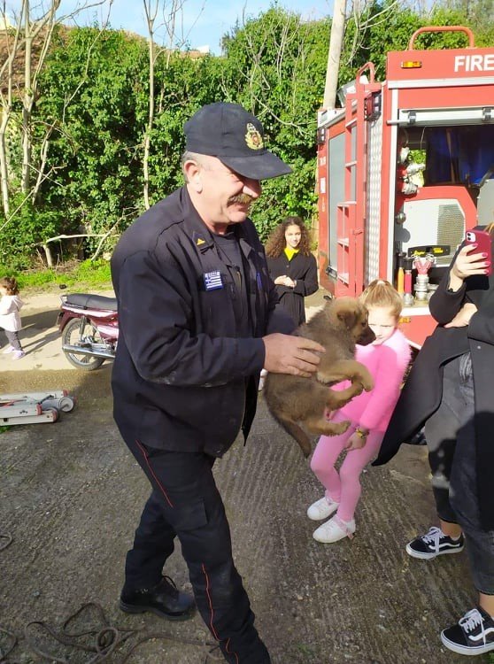 Το σκυλάκι διεσώθη με επιτυχία ενώ μικροί και μεγάλοι έδωσαν συγχαρητήρια και ευχαρίστησαν τους πυροσβέστες.