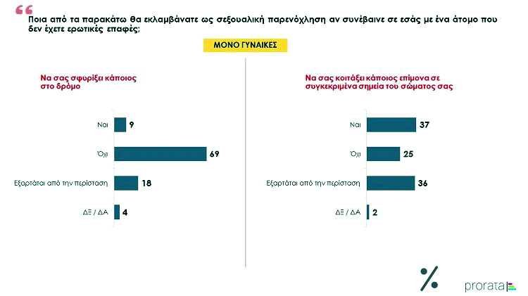 Τα ευρήματα της έρευνας αποτυπώνουν τα όρια της ανεκτικότητας απέναντι στα φαινόμενα παρενόχλησης και κακοποίησης που σχετίζονται με το φύλο, ενώ επιβεβαιώνουν την σχετικά πιο διευρυμένη ανοχή των ανδρών απέναντι σε αυτά.