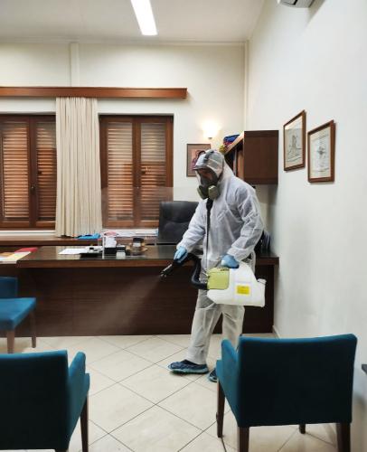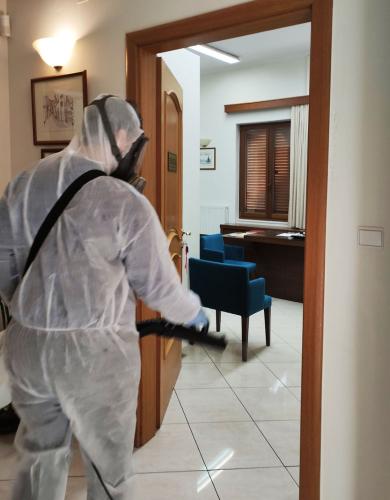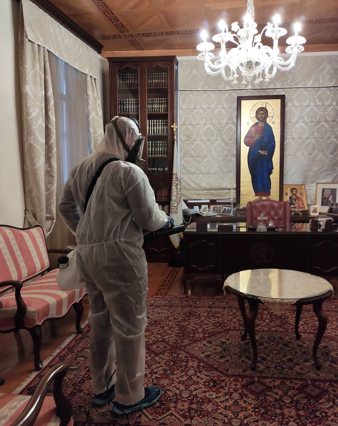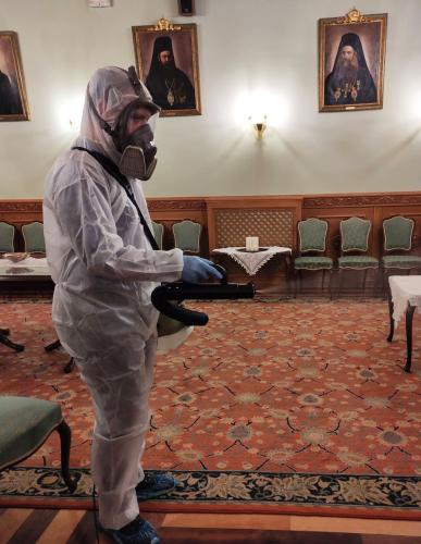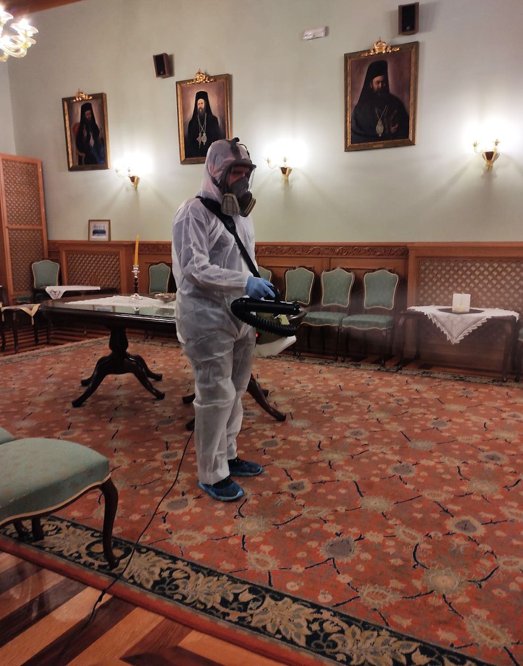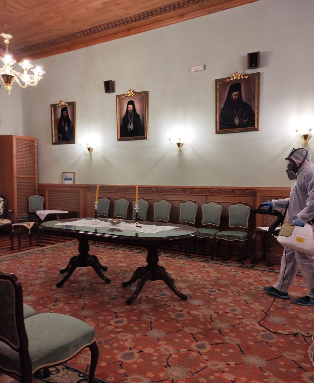 Όπως ανακοίνωσε στο χθεσινό βιντεομήνυμά του ο Σεβ. Μητροπολίτης Ρεθύμνης και Αυλοποτάμου κ. Ευγένιος (https://www.youtube.com/watch?v=Pti-9hbsYGo), πραγματοποιήθηκε σήμερα, 10 Φεβρουαρίου 2021, η προβλεπόμενη από τα υγειονομικά πρωτόκολλα επιμελής απολύμανση όλων των χώρων στα Γραφεία της Ιεράς Μητροπόλεως Ρεθύμνης και Αυλοποτάμου.