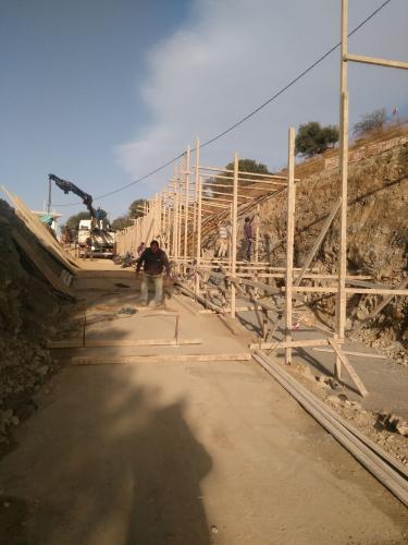 Σε αυτή την φάση υλοποίησης κατασκευάζεται τοιχίο αντιστήριξης μήκους 90 μέτρων το οποίο ξεκινάει από ύψος 0,5 μέτρων και καταλήγει 6 μέτρα λόγο της μεγάλης υψομετρικής διαφοράς των δυο παράλληλων δημοτικών οδών που οδηγούν η μία προς το οικισμό (πλατεία του Αγίου Δημητρίου) αλλά και τον οικισμό Αγαλιανού και η άλλη προς την νότια πλευρά του και τις παραλίες (Ανατολικά, Γιαλοπόταμα, Πύργος, Αγιά Φωτιά, Ποδαρέ, Γλίμα ).