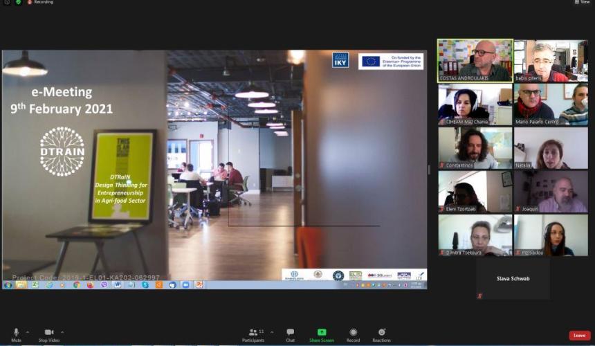 Αντικείμενο της πρώτης συνάντησης (2/02/2021) ήταν η δημιουργία του εκπαιδευτικού υλικού πάνω στη «Σχεδιαστική Σκέψη». Υπεύθυνος εταίρος για τη δράση αυτή είναι τo Μεσογειακό Αγρονομικό Ινστιτούτο Χανίων. Στόχοι του πακέτου εργασίας είναι η ανάπτυξη εκπαιδευτικού υλικού βάσει του προγράμματος σπουδών και του εκπαιδευτικού μοντέλου, η μεταφορά ενημερωμένων γνώσεων για κάθε εκπαιδευτική ενότητα, η ανάπτυξη μιας ανοικτής εκπαιδευτικής πλατφόρμας, ο συνδυασμός διαφόρων τύπων εκπαιδευτικού υλικού και μεθόδων εκπαίδευσης, και η παροχή μιας πολυσύνθετης μαθησιακής εμπειρίας στην ομάδα στόχου του έργου «DTRaΙΝ».