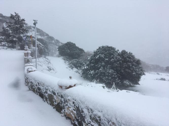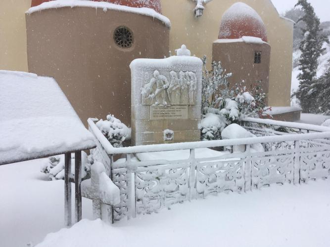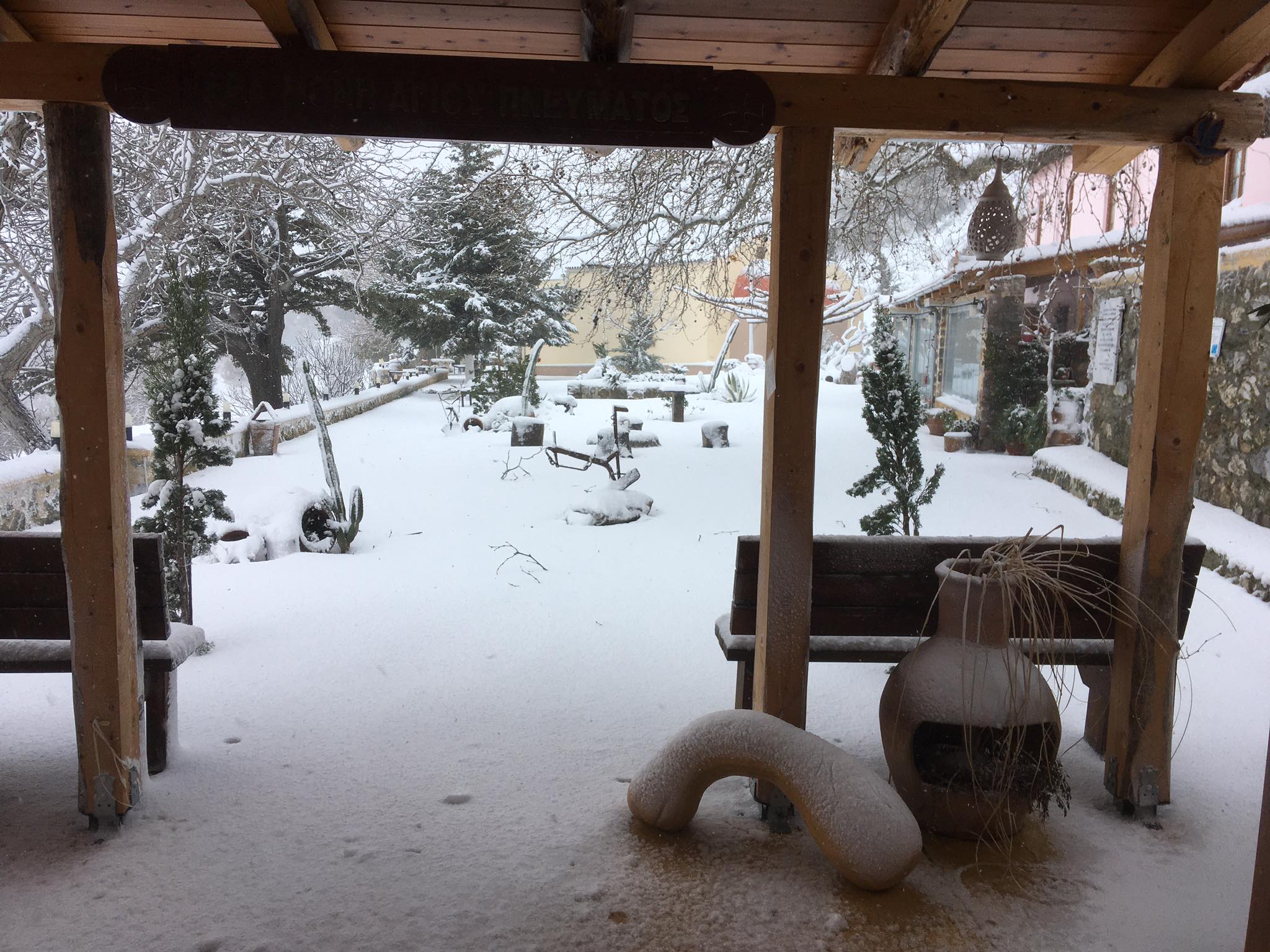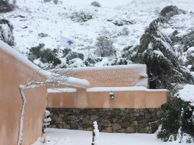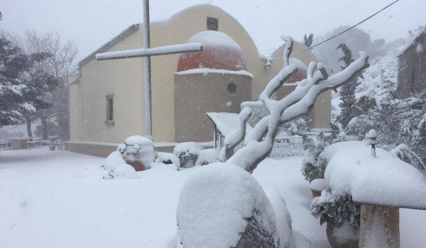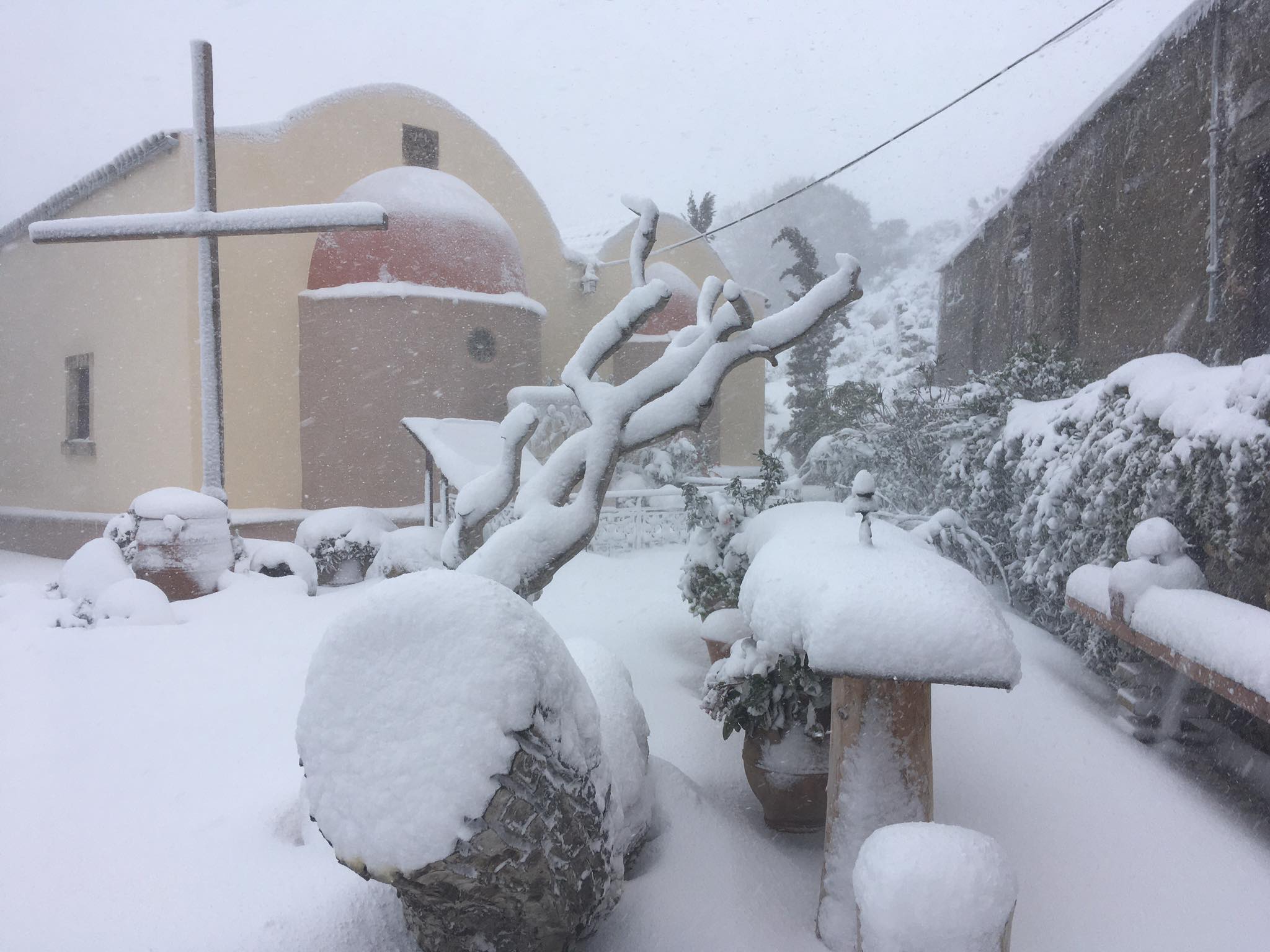 Πανέμορφη μέσα στο λευκό της πέπλο φαντάζει από το πρωί της Τρίτης η ιστορική Ιερά Μονή Αγίου Πνεύματος Κισσού στον Δήμο Αγίου Βασιλείου. Η χιονόπτωση ξεκίνησε από το βραδάκι της Δευτέρας και η επόμενη μέρα βρήκε το μικρό μοναστήρι σκεπασμένο με παχύ στρώμα χιονού, δημιουργώντας παραμυθένιες εικόνες, τις οποίες μοιραζόμαστε μαζί σας. Ευχαριστούμε ιδιαιτέρως τον Ηγούμενο της μονής, Αρχιμανδρίτη π. Βαρθολομαίο για το φωτογραφικό υλικό που δημοσιεύουμε.