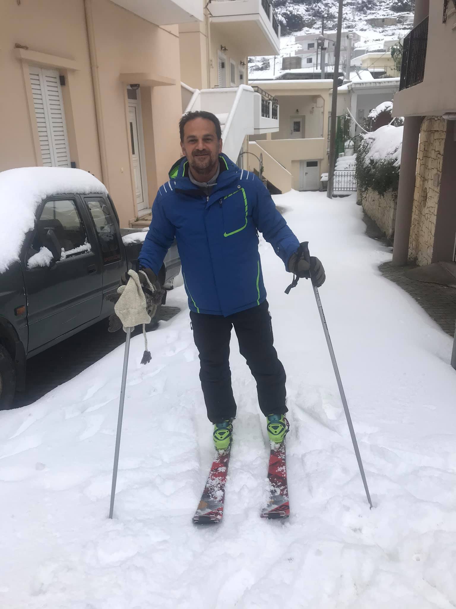 Έτσι όταν η έντονη χιονόπτωση μετέτρεψε τους δρόμους των Ζωνιανών σε πίστες για σκι, φόρεσε τον εξοπλισμό του και απόλαυσε το χιόνι σαν να βρισκόταν σε χιονοδρομικό κέντρο.