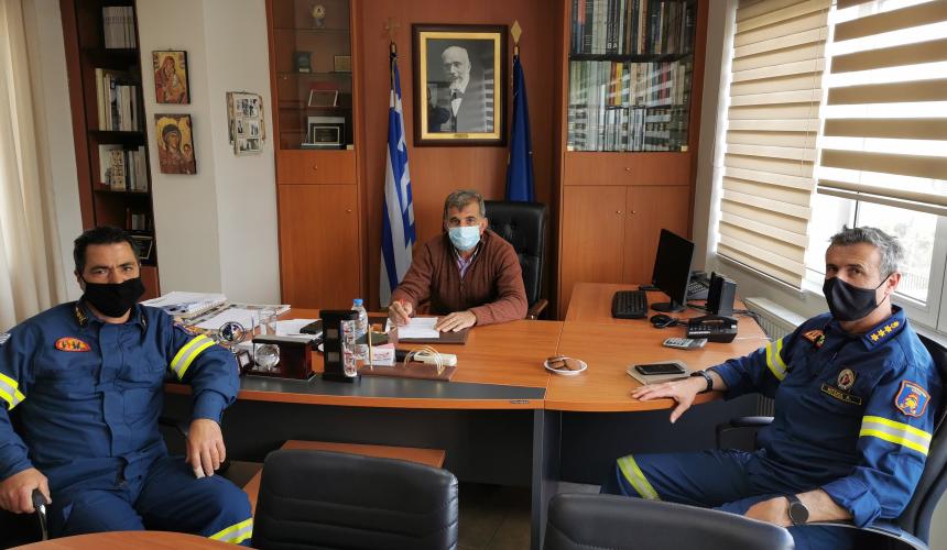Η συνάντηση πραγματοποιήθηκε στο πλαίσιο της πρόσφατης ανάληψης των καθηκόντων του νέου Διοικητή της Πυροσβεστικής Υπηρεσίας Ρεθύμνου, κατά την οποία συζητήθηκαν με κάθε λεπτομέρεια, η λήψη συγκεκριμένων μέτρων πρόληψης πυρκαγιάς καθώς και ο συντονισμός των υπηρεσιών σε περίπτωση εκδήλωσης της.