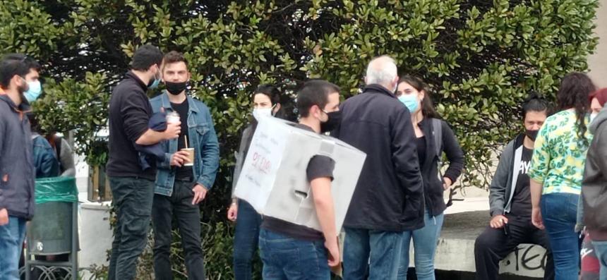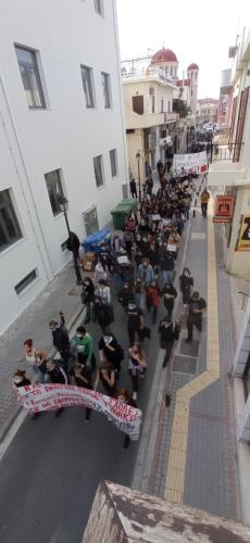 Οι εκπαιδευτικοί και οι φοιτητές αφού συγκεντρώθηκαν στο δημαρχείο, ξεκίνησαν την πορεία τους σε κεντρικούς δρόμους της πόλης.