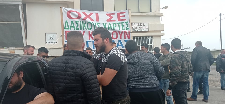 Ξεκίνησε η συγκέντρωση των αγροτών στο δασαρχείο Ρεθύμνου. Στις 12:00 θα ξεκινήσει μηχανοκίνητη πορεία με προορισμό τo Μέγαρο της Αντιπεριφέρειας, όπου θα γίνουν και ομιλίες. Η διαδήλωση γίνεται στο πλαίσιο της παγκρήτιας κινητοποίησης αγροτών, κτηνοτρόφων και ιδιοκτητών ακινήτων με αίτημα την απόσυρση και την διόρθωση των δασικών χαρτών. Χαρακτηριστικό της συγκέντρωσης που γίνεται, είναι η παρουσία πολλών πολιτών που προσέρχονται για συμπαράσταση στους διαδηλωτές.