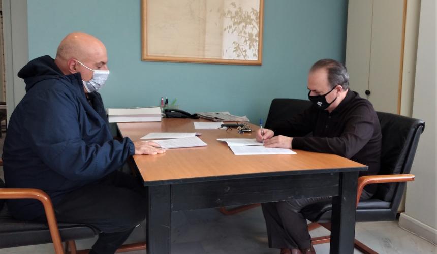 Τη σύμβαση του έργου «Επισκευή, συντήρηση, λειτουργικές παρεμβάσεις στα σχολικά κτίρια του Δήμου Ρεθύμνης υπέγραψε ο Δήμαρχος Ρεθύμνης κ. Γιώργης Χ. Μαρινάκης με τον ανάδοχο του έργου, παρουσία του Αντιδημάρχου Τεχνικών Έργων του Δ.Ρ κ. Άγγελου Μαλά .