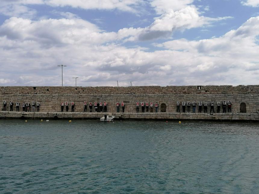 Οι συγκεντρωμένοι αφού σχημάτισαν ένα “ανθρώπινο” σύνθημα με το μήνυμα τους στο Φάρο του ενετικού λιμανιού, φώναξαν συνθήματα και ανανέωσαν το ραντεβού τους για της 20 του μήνα.