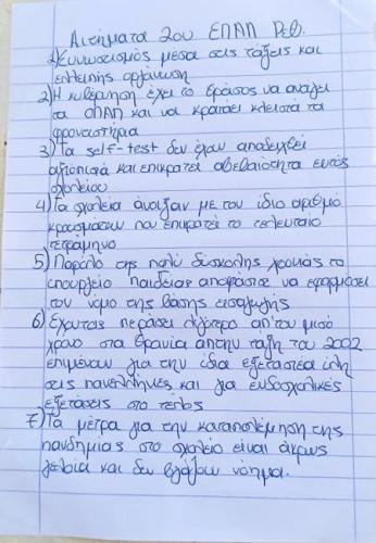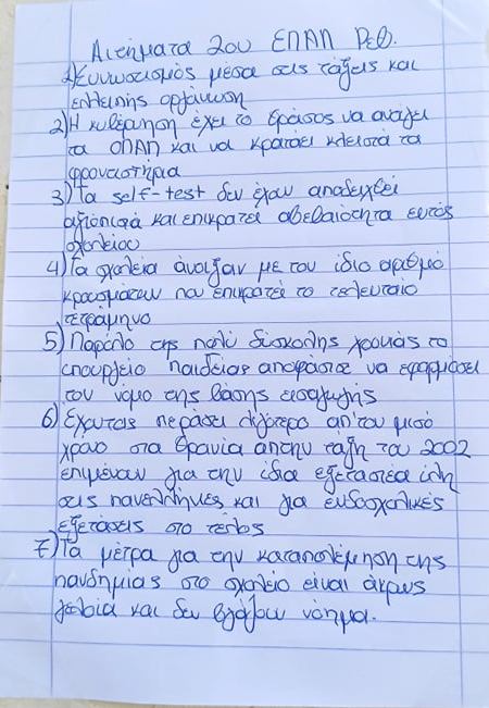 Σε κατάληψη προχώρησαν οι μαθητές του 2ου ΕΠΑΛ Ρεθύμνου, οι οποίοι στα επτά αιτήματά τους αναφέρουν τόσο την ανεπάρκεια των μέτρων κατά της πανδημίας, όσο και το ζήτημα της ύλης των πανελλαδικών που παρά τις χαμένες ώρες παραμένει η ίδια.