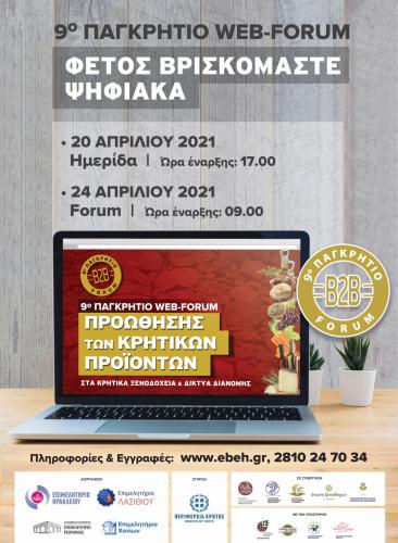 Να σημειωθεί ότι για πρώτη φορά φέτος το Παγκρήτιο Φόρουμ θα διεξαχθεί διαδικτυακά το Σάββατο 24 Απριλίου 2021 προσαρμοσμένο στις νέες συνθήκες, λόγω COVID-19. Η διαδικασία για τη δήλωση συμμετοχής έληξε στις 14 Απριλίου και οι συμμετέχοντες από όλη την Κρήτη έφτασαν τους 222. Με πολύ απλές διαδικασίες και καθοδήγηση από τους διοργανωτές, οι συμμετέχοντες θα μπορούν από το σπίτι ή το γραφείο τους να «συναντηθούν» μέσω υπολογιστή και να συζητήσουν για τα προϊόντα που παράγουν ή ενδιαφέρονται να αγοράσουν, αντίστοιχα.