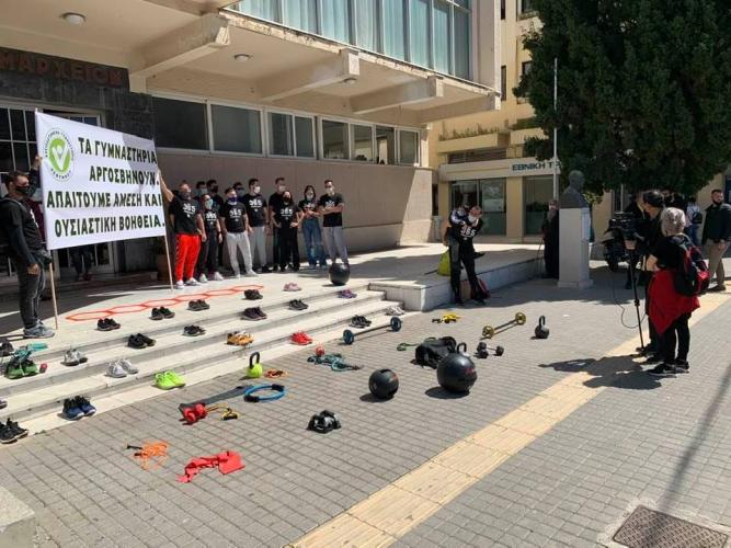 Στο πλαίσιο της Πανελλαδικής κινητοποίησης οι ιδιοκτήτες γυμναστηρίων και στο Ρέθυμνο προχώρησαν σήμερα σε συμβολική διαμαρτυρία ζητώντας μέτρα στήριξης για τον κλάδο τους ο οποίος έχει υποστεί μεγάλη ζημιά λόγω της υποχρεωτικής πολύμηνης αναστολής λειτουργίας.