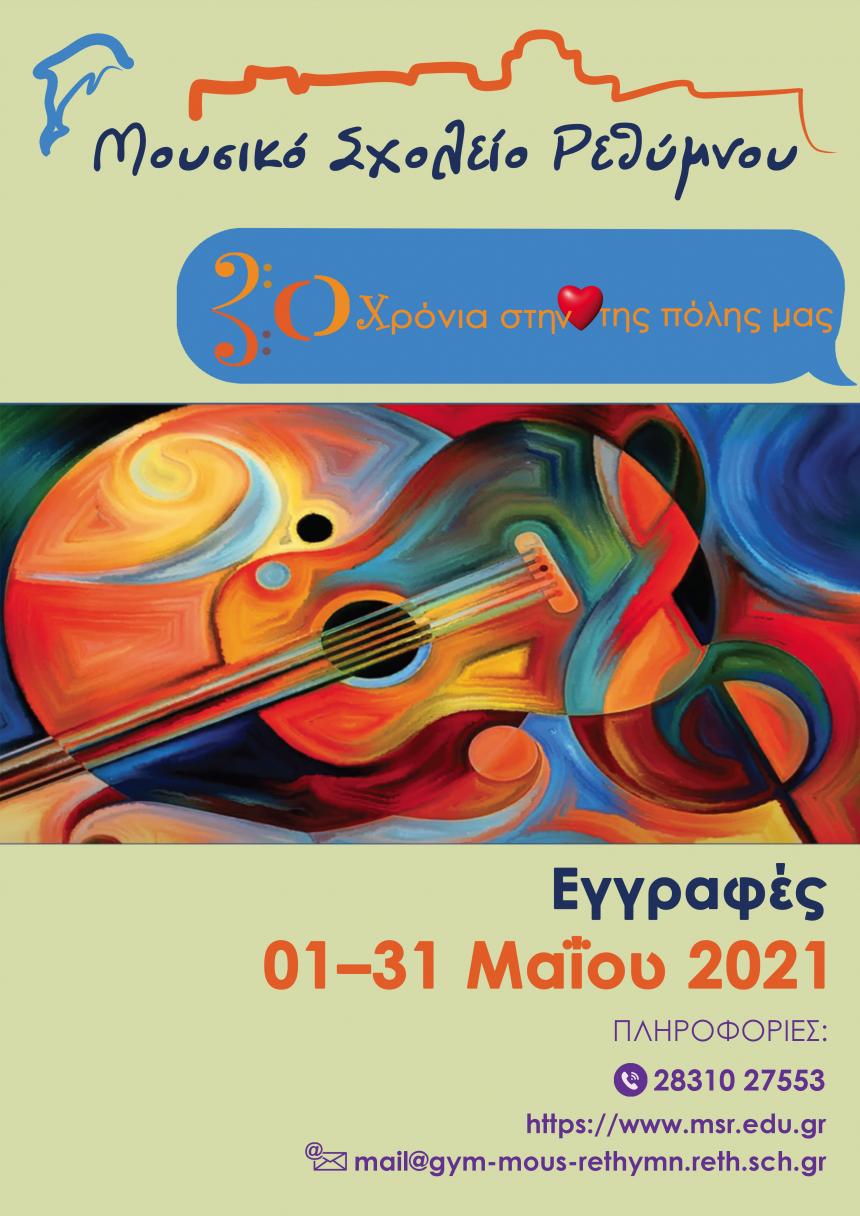 Το Μουσικό Σχολείο Ρεθύμνου ενημερώνει ότι οι αιτήσεις συμμετοχής στη διαδικασία επιλογής για την Α΄ Γυμνασίου του Σχολικού έτους 2021-2022, πραγματοποιούνται από 1 έως και 31 Μαΐου. Όσοι γονείς επιθυμούν να εγγράψουν τα παιδιά τους στο Μουσικό Σχολείο Ρεθύμνου πρέπει να υποβάλλουν ηλεκτρονική αίτηση συμμετοχής για τη διαδικασία επιλογής