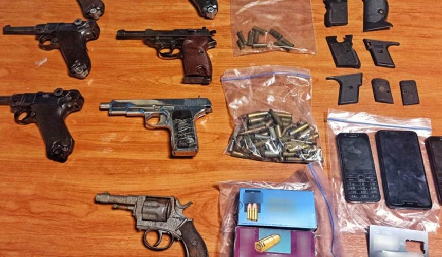 Ειδικότερα, χθες (22.04.2021) εντοπίστηκε από αστυνομικούς του Τμήματος Αντιμετώπισης Οργανωμένου Εγκλήματος της Γενικής Περιφερειακής Αστυνομικής Διεύθυνσης Κρήτης ένας εκ των συλληφθέντων ημεδαπών κατά το χρόνο που παρέλαβε είδη οπλισμού από υπαίθριο χώρο επί της Εθνικής Οδού, τα οποία ήταν κρυμμένα στο συγκεκριμένο σημείο. Στη συνέχεια αφού ακινητοποιήθηκε, ακολούθησε έρευνα στον ημεδαπό, σε Ι.Χ.Φ. αυτοκίνητο ιδιοκτησίας του στο οποίο επέβαινε, καθώς και στον εν λόγω χώρο όπου βρέθηκαν και κατασχέθηκαν συνολικά: