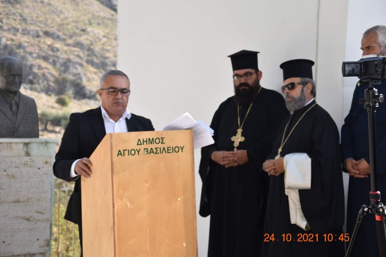 Αναλογίζομαι το μέγεθος της ευθύνης και ταυτόχρονα νιώθω το χρέος, εκ μέρους του Δήμου Αγίου Βασιλείου να απευθύνω τον πρέποντα λόγο για ένα Ευγενή Θεσμικό Άνθρωπο ο οποίος υπηρέτησε για πολλά χρόνια την Τοπική Αυτοδιοίκηση και το δημόσιο συμφέρον.