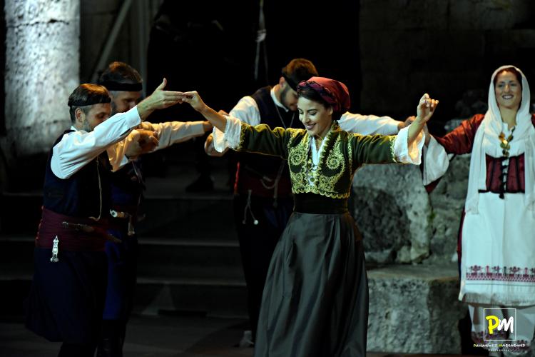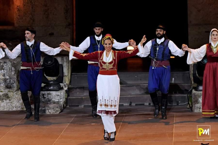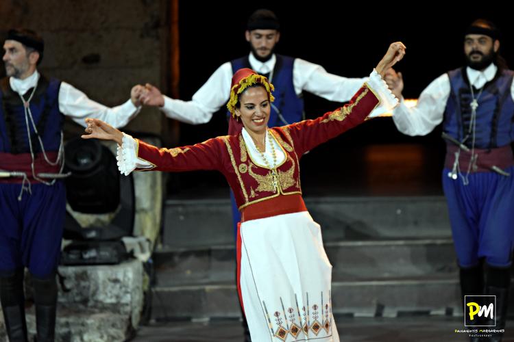 Όταν ήρθε η στιγμή να χορέψει ο Όμιλος τους λεβέντικους κρητικούς χορούς, εκεί κάτω από τον Ιερό βράχο